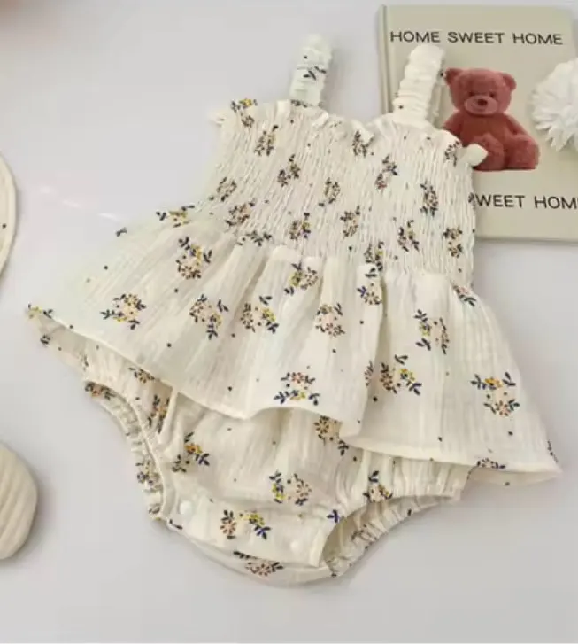 Summer active baby girl suspenders tutu style bodysuit, with breathable linen material. cotton and stretch able.